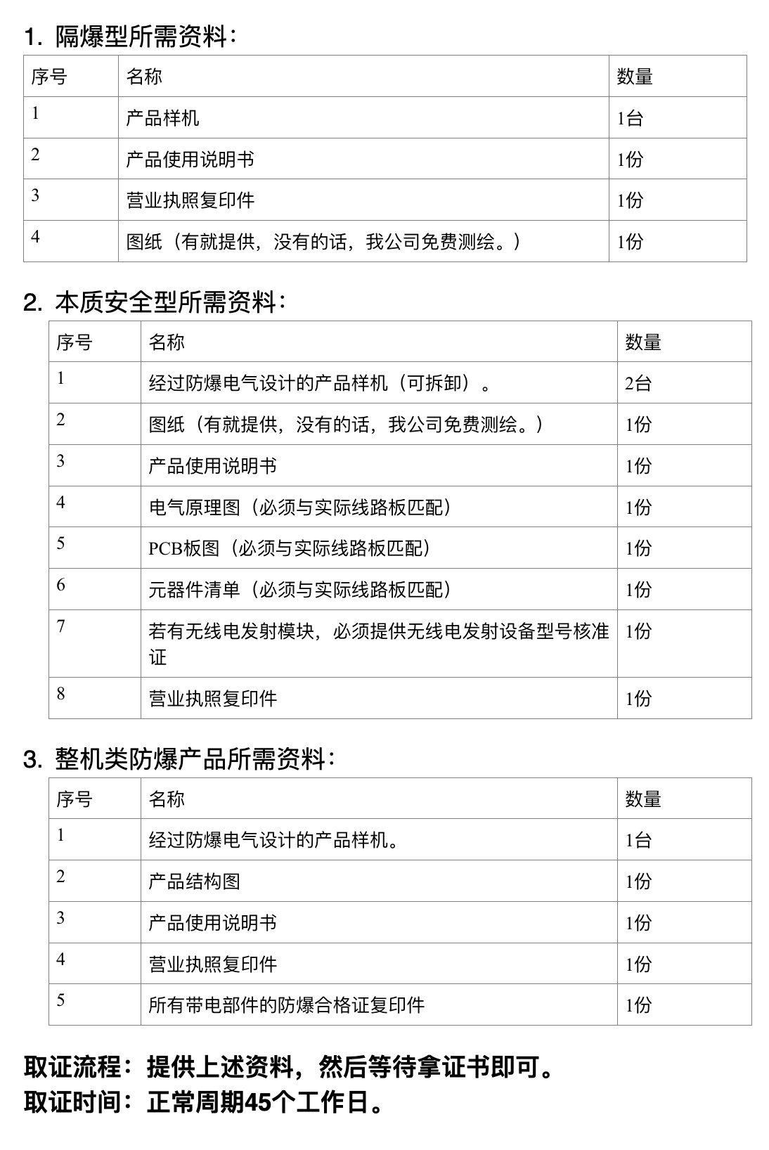 在申請防爆CCC認證之前建議大家事先準備好以下資料,便于下一步進(jìn)行,資料有: